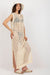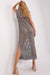 Openwork long knit sleeveless dress with decorative slits on the sides. The dress is perfect for the beach and beyond.