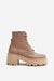Women's boots made of natural leather. Set on a massive heel and a thick sole. The noses are rounded. This model is fastened with a zipper and additionally has lacing. Ankle-length upper. Stiffened heel counter.