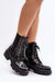 Women's boots made of eco leather. Set on a flat heel. Elastic inserts on the upper. The noses are rounded. This model is fastened with a zipper on the side and additionally has lacing. The interior is insulated with shoe blanket. A great model for autumn and winter styling!