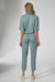Beige trousers with a stitched edge. Elasticated waist, decorative tie at front. Legs slightly tapered at the bottom. No pockets.