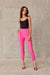 The elegant pants have straight legs finished with a delicate turn-up. This makes them look extremely elegant, even when accompanied by sneakers. There are slanted, slip pockets on the sides and a zipper closure on the side. They come in a solid color scheme, which adds to their timeless style. Made of smooth fabric with a classic cut. The product is manufactured and sewn in Poland.