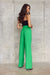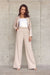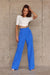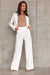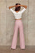 Long and wide-legged bell-bottom pants feature slanted slip pockets and a covered zipper closure on the side of the pants. Made of high-quality fabric of solid color. High top, which optically slims the silhouette, with a short top or blouse gently tucked inside the pants will be perfect. Loose pants are an ideal model for styling all year round. The product is made and sewn in Poland.