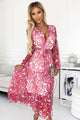 The maxi dress is made of light and delicate chiffon, which will be very comfortable to wear. The evening dress has a beautiful envelope neckline, which will optically lengthen our figure and beautifully emphasize the bust. The maxi dress is also characterized by an asymmetrical cut, which allows you to show your legs and will be an ideal model for shorter as well as taller women. The dress has a sewn-in petticoat, so the fabric will not show through. This dress model comes in beautiful floral prints. The product is made and sewn in Poland.