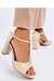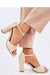 Women's suede sandals on a post. Gold ornamentation beautifully emphasizes the foot, and the adjustable clasp gracefully wraps around the ankle. The feminine cut of this model is undoubtedly complemented by an 8.5 cm high heel, which will slenderize your silhouette.... If you want to look special then you must have them! Outer material - ecological suede.