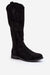 Women's openwork boots will perfectly complement almost any daily styling! Made of eco-suede. Set on a flat, stable heel. Rounded toe caps. Upper before the knee, zippered. In addition, this model has a padded heel counter. You should definitely have them!