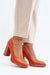 The stylish pumps are made of high-quality natural leather. Set on a heel in the form of a post. The noses are rounded. Soft insole and stable heel will take care of your comfort. The pumps have a stiffened heel counter.