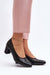 Beautiful pumps set on a heel in the form of a low post. Soft and comfortable insole is made of natural leather. Almond-shaped nose pads. Model with decorative embossing. Classic pumps should be in your closet! You will certainly use them in many situations.