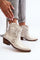 Women's cowgirl-style boots are made of natural leather. Set on a low heel, which guarantees stability at every step. Pointed nose will optically slenderize the legs. Slip-on model. Ankle-length upper.