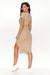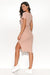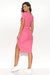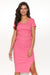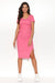 A fitted women's set that is a combination of a feminine blouse and skirt made of comfortable ribbed knit fabric. The blouse has short sleeves, a round neckline and ribbed sides for an original look. The midi skirt with a slit adds sex appeal and provides freedom of movement. This set is perfect for various occasions. You can wear it to business meetings with elegant accessories and stilettos. It will make evening outings extremely romantic. Thanks to the comfortable knitwear, the set provides comfort throughout the day. The combination of blouse and skirt in the form of a set is a practical and fashionable solution. Worn together or combined with other clothes, they create a variety of styling. Emphasize your femininity and enjoy comfort all day long.