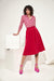 A flared midi skirt is an excellent element of a distinctive soft-office look. Juxtaposed with an elegant shirt, it can be a striking alternative to classic office styling, and in duet with a strappy top a casual, feminine outfit. Pleasant to the touch material, with a blend of viscose, provides high comfort of wearing.