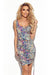 Colorful dress with neckline and ties. The length of the skirt can be freely adjusted. Made of pleasant to the touch, elastic material. Brand Numoco. Polish product.