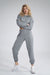 Sporty quilted pants with a sewn-in elastic band at the waist and at the bottom of legs, without pockets.