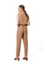 Unique jumpsuit with binding on one shoulder. The top is slightly loose, with elastic at the waist and creases. Legs tapered to the bottom. Slip pockets on the sides. Covered zipper closure.