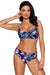 Swim bra with padded cups, with underwire to support and shape the bust. The straps are sized to fit, adjustable, non-removable. The bra fastens at the back, made of patterned microfiber.