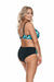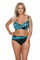 Bikini bra with a distinctive and intriguing pattern with a motif of tropical leaves. The bra is made of knitted fabric, soft with modelling cuts and padded with underwiring. Adjustable straps, not removable. The width of the straps and the type of clasp is matched to the size of the swimsuit. A delicate decoration between cups adds charm to the whole. Ideal for women with fuller curves. The high-waisted briefs are made of elastic microfiber in black (sold separately). A decorative element is draped fabric in the shape of a belt which optically slenderizes and shapes the belly.