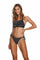 Swimsuit with molded gel push-up cup, underwire. The bra top with frills of the hiszpanka type, ideally suited for ladies with smaller breasts. Made of black microfiber and decorated with frills of printed knitted fabric with colorful dots. The costume is tied up at the neck and fastened at the back. The construction of the bra perfectly gathers and lifts the bust, thus optically enlarging it.