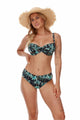 The bra is made of knitted fabric with a snake skin motif. The bra has soft cups with modeling cuts and is padded with underwire, so it perfectly supports medium and large breasts. The straps are adjustable, non-removable. The width of the straps and the type of clasp is matched to the size of the swimsuit. A delicate decoration between the cups adds charm to the whole. Ideal for women with fuller shapes.