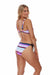 Bikini type panties, tied at the sides with a lower top, are extremely comfortable yet coquettish. The panties are made of microfiber with colorful horizontal stripes.