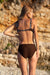 Two-piece swimsuit with padded bra. Brown with an attractive pattern on the surface of the material. Ideal swimsuit for larger busts. Comes with slightly higher lined panties. Comfortable, adjustable straps and a convenient buckle fastening on the back. A very comfortable and elegant costume for the beach.