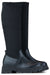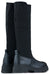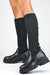 Fashionable women's boots were made from a combination of eco leather and ribbed fabric. The upper is before the knee. The model is set on a flat heel and a delicate platform with grooves. The shoes have an insulated insole. The nose is rounded. Slip-on model. They will look great with dresses or mini skirts.