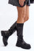 Classic women's boots made of eco leather. Upper before the knee. Model with zipper closure along the entire length of the upper. The boots are set on a platform and a flat heel. The inside is insulated with shoe blanket. In addition, the heel counter in these boots is stiffened. You should definitely have them!