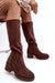 Women's boots with an upper before the knee. Made of eco-suede. Fastened with a zipper. Set on a low, massive heel. Stiffened heel counter. Rounded toe. You will use them in many stylizations! They must be yours!