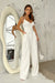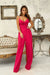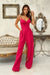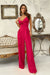 Elegant jumpsuit finished on the shoulders with chains. The top is cut out, beautifully matching the wide bottom of the suit. Perfectly tailored belt, slims the waist. The suit is fastened with a covered zipper and has a lining. Available in beautiful colors.