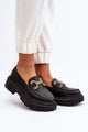 Women's moccasins made of fabric. This model has a rounded nose and a decorative strap at the front. Comfort of use is provided by a flat heel and a solid platform. Moccasins are a classic, which is always worth having in your footwear collection. You should definitely own them!