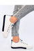 Two-tone sneakers for women. These shoes charm with their classic cut combined with fashionable, contrasting inserts and shiny stones on the loops. They are simply more than a must have ? be sure to adopt them to your closet and create unique styling with them! Outer material - ecological leather.