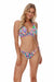 Classic bikini bottoms tied at the sides, made of multicolored knit fabric that will perfectly highlight tanned skin. The ties are finished with a gold ornament.