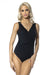 This swimsuit is perfect for the pool, the lake or the salty waters of the ocean. The combination of a classic style with pleats and an overlapping bra make this swimsuit accentuate your cleavage. The upper part has slightly padded cups that will mould your breasts and bring them together. This type of padding covers the front of the bust (the padding cup does not cover the breasts to the base, as in the case of bardot bras), thanks to which the swimsuit is more flexible in fitting different circumferences. Creases and seams in the fabric and a lining in the front part will make your silhouette look slimmer. The cut-out back will allow you to tan your back uniformly. The swimsuit is made of pleasant to the touch and elastic fabric that will fit your body perfectly. The fabric was created to ensure a good fit and long hours spent on the beach.