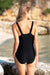 One-piece swimsuit made of pleasant to the touch, soft fabric. Stiffened bra without underwire, for larger busts. The swimsuit is packed in a bag.