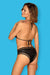 Vacation planned? Then take this unique Celestie swimsuit with you and you will dominate all eyes at the pool. This two-piece in black has a unique cut that will make you look sexy. The bra has an intriguing look, with black tulle inserts and a bikini cut. The cups are soft, without padding, the circuit and straps are tied. The briefs are comfortably cut and also decorated with tulle. On the fabric subtle print.