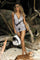 Very pleasant to the body beach tunic, which is perfect for a trip with a bunch of friends. Sexy cut makes any woman wearing this tunic make an amazing impression. The deep neckline beautifully emphasizes a woman's assets. Fancy tying at the back perfectly exposes the tanned back. A cool solution is the ribbons sewn below the waist and on the sides. Thanks to them you can freely adjust the length and width of the tunic.