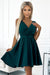 Asymmetrical dress with a longer back, neckline and belt. The dress comes in a bottle green color. The skirt with a longer back will be perfect for dancing. Polish production. Numoco brand.