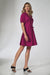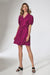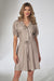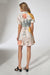 Kimono mini dress with a collar in a floral pattern. Decorative patches on the bust line, 3-button fastening, drawstring waist. Sleeve finished with elastic band. A flared bottom of the dress. Pockets at side seams. No lining.