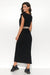 A long, extremely elegant dress sewn from a lightweight sweatshirt knit. It has a round neckline and short sleeves with padding. The dress reaches to the lower part of the calf. The practical slit looks great and makes the dress comfortable and suitable for many circumstances. Therefore, you can wear sports shoes with it and go for a walk. Nothing prevents you from wearing to it also delicate sandals or stilettos. The belt attached to the dress sensationally emphasizes the slim waist. The smooth material makes the casual creation an extremely versatile fashion choice.