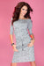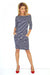 Sporty dress with 3/4 sleeves and pockets. Dress made of material with a dark gray pattern. Made of elastic and pleasant to the touch material with a slightly suede texture. Polish product. Brand numoco.