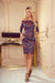 Sporty dress with 3/4 sleeves and pockets, orange leaf pattern on denim. Made of elastic material with a slightly suede structure. Polish product. Brand numoco.