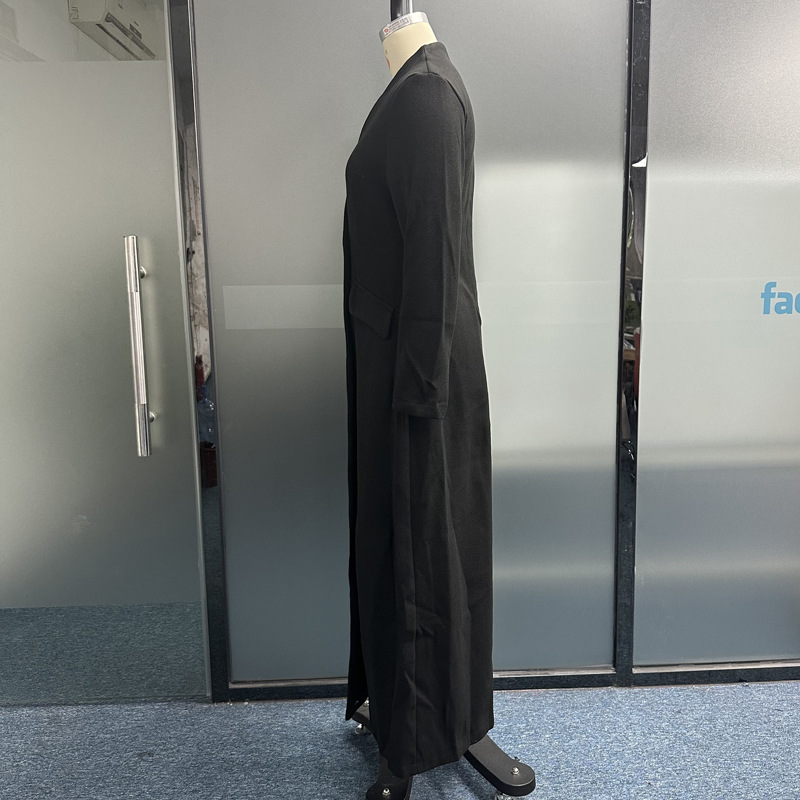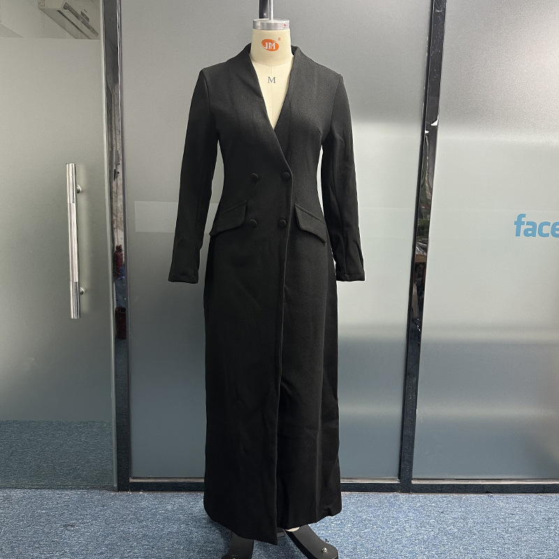 Sobretudo Comprido de Inverno com Gola em V e Cintura