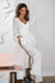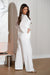 Elegant jumpsuit with long sleeves and wide legs. The layered neckline gently exposes the bust. The model with a perfectly tailored waist slims and the legs lengthen the silhouette. Wide sleeves finished with decorative buttons. The suit is fastened with a covered zipper.
