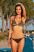 Wonderful women's bikini, Ewlon Zanzibar two-piece swimsuit. Multicolored motifs on the cups of the top add elegance. Beachwear with soft bra tied at the neck and back. The set includes charming bra briefs with a lower cut, decorated with a multicolored stripe and tied at the hips. The whole looks extremely sexy and sensual. The swim bikini is made of high-quality, UV-resistant and quick-drying material.
