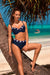 Two-piece women's swimsuit in navy blue color. Deep, comfortable and padded cups with bottom underwire fantastically hold the breasts in place, lift them up and model them perfectly. They give a round shape, more sensual and firm. A model that emphasizes the beauty of the silhouette. Panties, panties with a higher top, very comfortable on the lining. Beautiful beach costume for swimming and sunbathing. Swimsuit made of high Italian fabric, quick-drying.