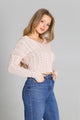Warm, soft unbuttoned sweater with voluminous sleeves. Wide ribbing at the bottom and cuffs. The cut reaches to the hip line. Made with a thick weave, very lightweight.