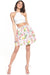 Mini skirt with two ruffles and an elastic waistband in a floral pattern.
