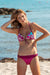 Two-piece women's swimsuit with a comfortable padded bra tied at the neck and back. Thin straps reveal the body more firmly making it the perfect swimsuit for sunbathing. Patterned pink fabric with attractive modern print. Comfortable panties with lining and decorative rings on hips. The animal motif adds a charming touch. A swimsuit that will make you look sensual and very feminine. Fantastic for the beach, pool and anywhere else where we have contact with water.