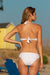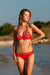 Attractive red Daisy two-piece swimsuit. An exceptionally elegant model with a soft bra with a pattern of charming blue flowers. Cups with underwires taking care of the perfect hold on the perimeter, lifting the breasts and pulling them inward creating the effect of a large, firm and sensual bust. It presents itself extremely impressive and sexy. Tied at the neck and back. Comfortable panties with a decorative, colorful stripe on the front. The swimsuit, due to the fact that it is resistant to chlorine in the pool and to UV rays, will be perfect for sunbathing, swimming and active leisure by the water.