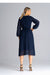 Dress in a flared cut, with long sleeves ending in an elastic band. Cheeky neckline, pleated at the waist, worn over the head.
