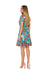 Summer dress with an overlap cut with a tie at the side and a ruffle at the bottom sewn from a printed fabric. Short-sleeved, unlined dress.