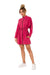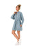 This multifunctional zippered sweatshirt with fashionable cutouts and lacing on the back can serve equally well as a tunic or dress for leggings. Dress with pockets on the sides.